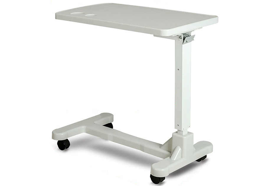 • Overbed table with steel frame and ABS one-piece molding platform;