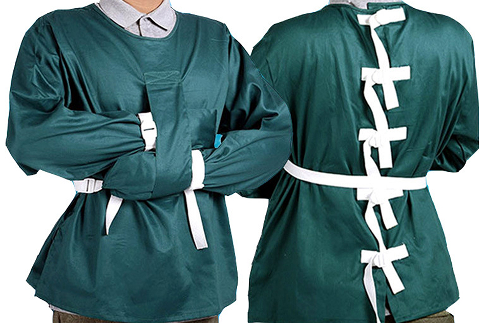 sleeves against the chest and tied the ends of the sleeves to the back of